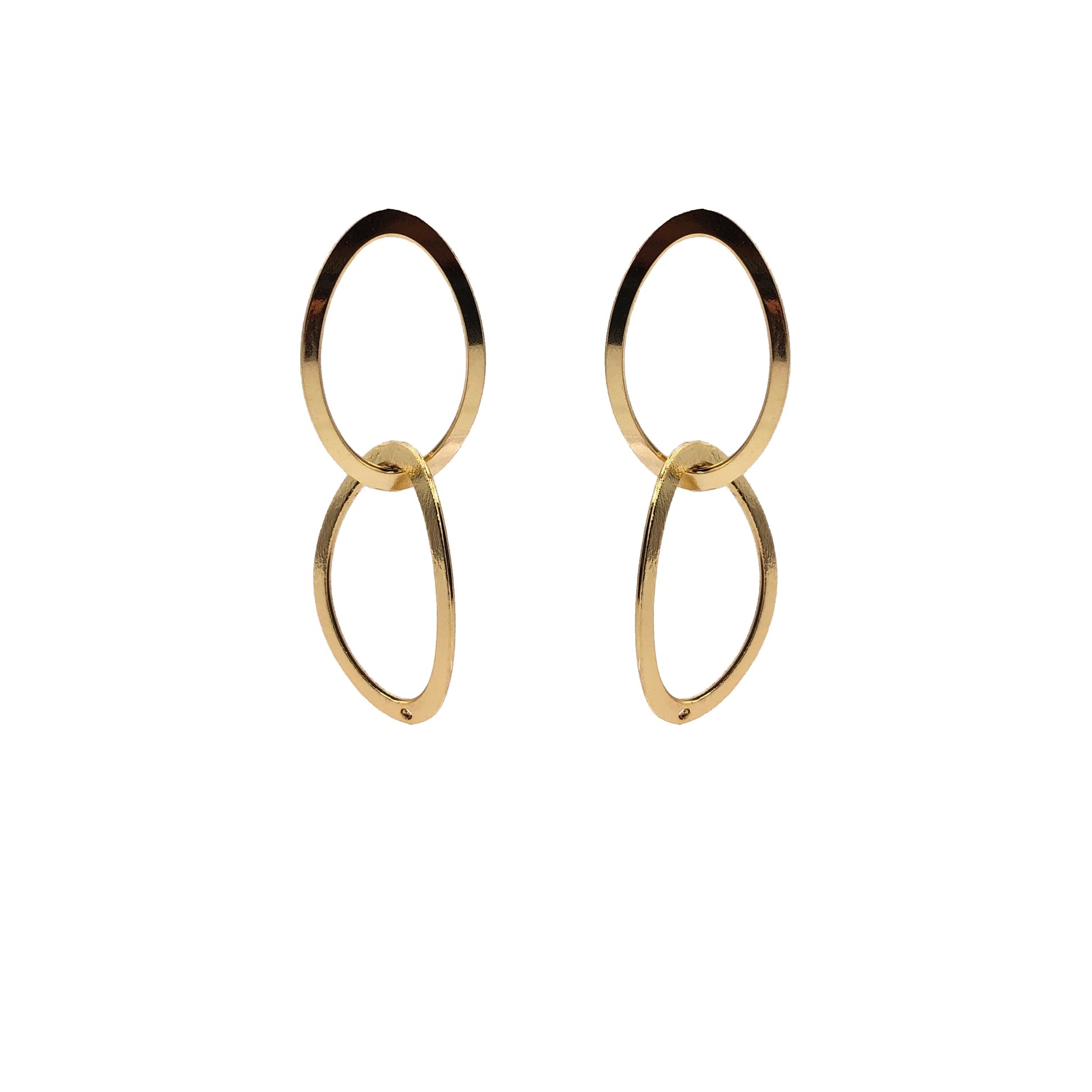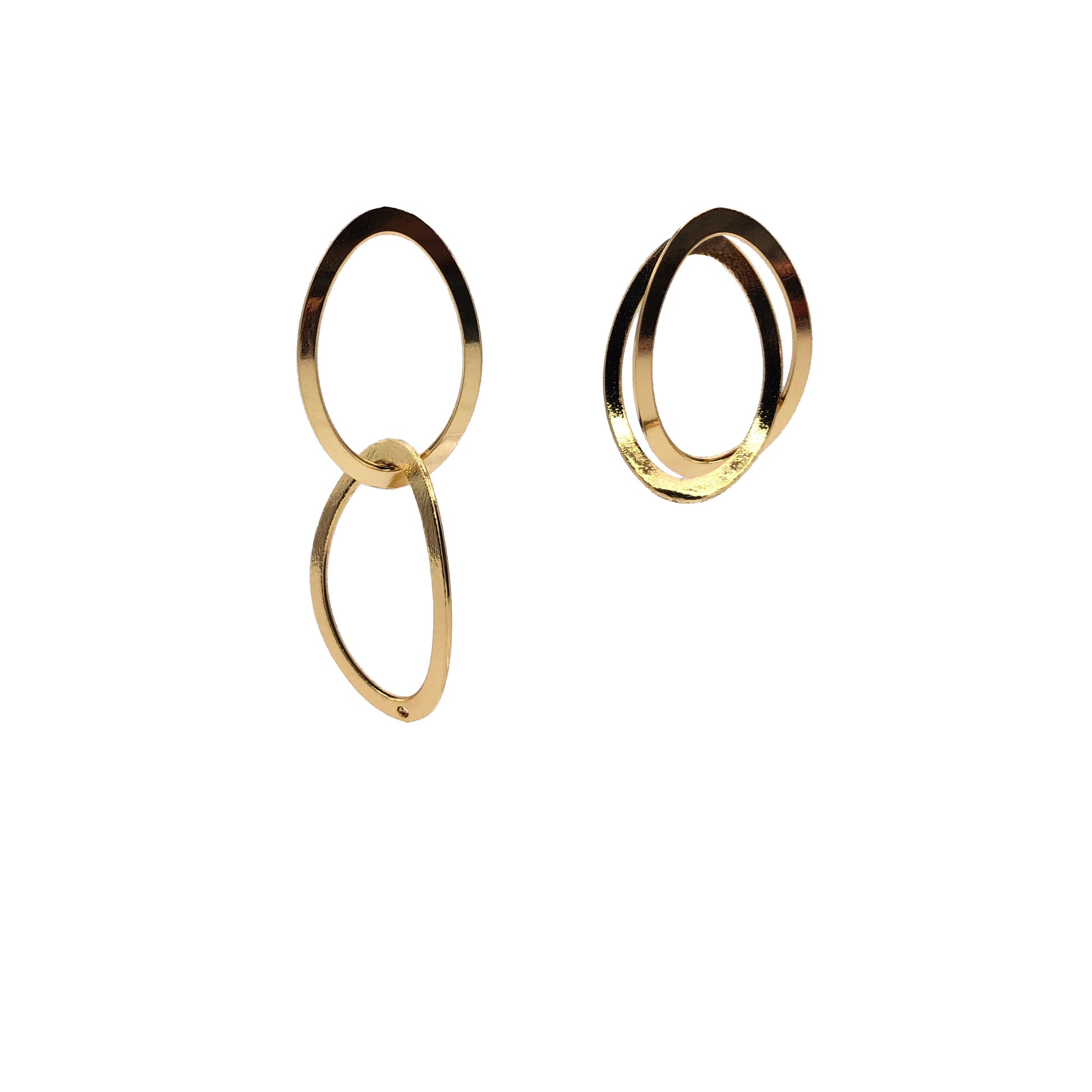 Sono costituiti da 2 ovali intersecati. Hanno una texture lucida e graffiata e hanno il perno. Una volta indossati si inserisce il perno nel foro dell'ovale appeso per creare la versione corta. Con questo set di Orecchini si creano tre diverse versioni. Da una più corta (3 cm) ad una più lunga (5,5 cm).